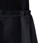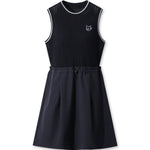 Creates a unique look with a woven skirt attached to a knit top