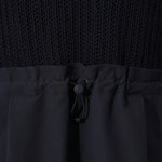 Adjustable silhouette with a waist string and tucked skirt detail