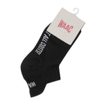 Women’s short socks featuring distinctive lettering and logo details.