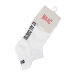 Women’s short socks featuring distinctive lettering and logo details.