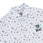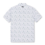 A short-sleeve polo shirt made of soft and stretchy polyester/spandex material, featuring an all-over pattern print