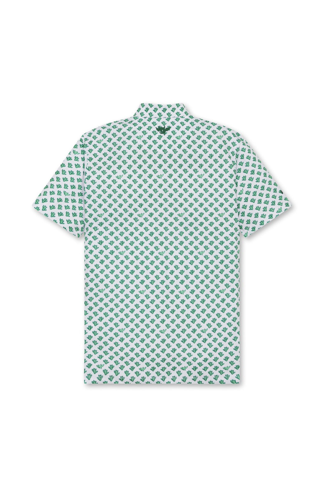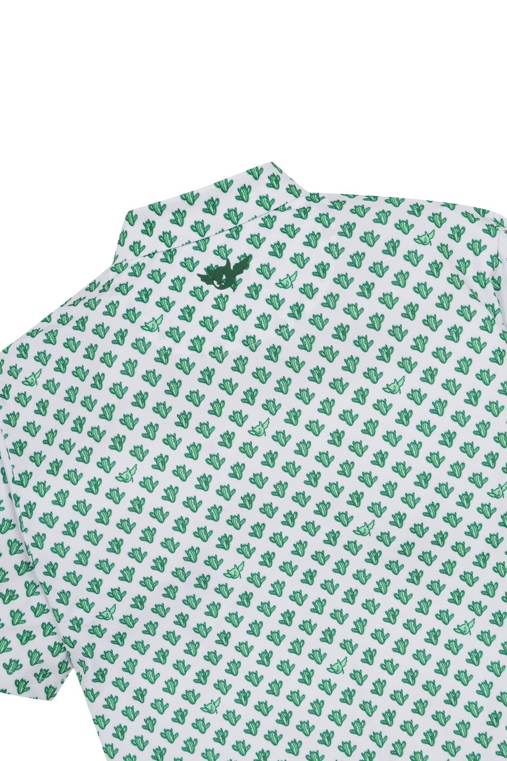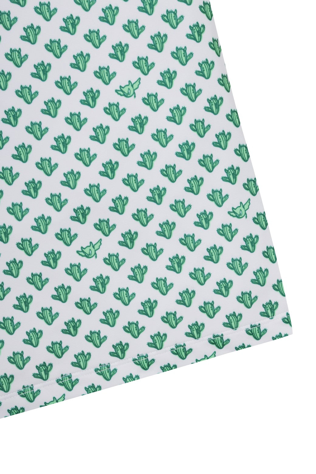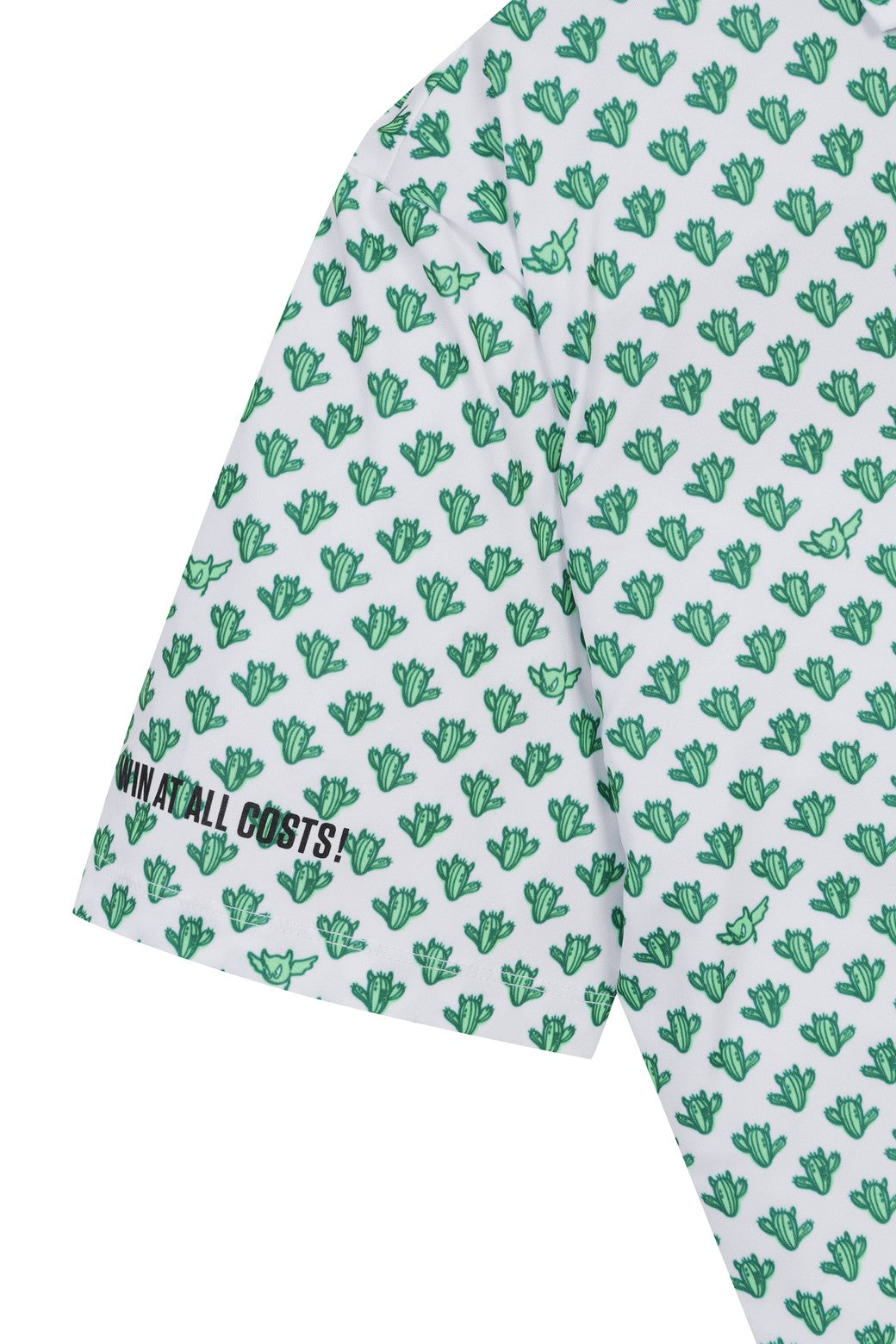 A short-sleeve polo shirt made of soft and stretchy polyester/spandex material, featuring a cactus wacky pattern print